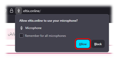 برای انجام صحیح آزمون Speaking در اِلتیکس، لازم است مرورگر مورد استفاده شما اجازه دسترسی به میکروفون را داشته باشد تا صدای شما بهدرستی ضبط و پردازش شود. در صورتی که دسترسی میکروفون غیرفعال باشد یا تنظیمات مرورگر بهدرستی انجام نشده باشد، امکان شرکت در آزمون یا ثبت پاسخهای صوتی وجود نخواهد داشت.
